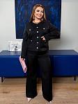 Костюм женский. Пиджак на пуговицах, карманы накладные рабочие, штанишки по низу палаццо, на талии без резинки. Пиджак на подкладке. Пояс не входит в комплект.
