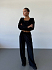 Костюм-тройка женский. Кофта, топ и брюки. Кофта застегивается на молнию, с двойным капюшоном. Брюки на резинке, есть карманы. Топ-бандо на резинках.
