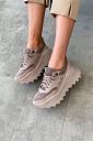 Кроссовки из натуральных комбинированных материалов – гладкой кожи, кожи с тиснением рептилии и замши. Волнистая рифленая подошва, высокая платформа из пеноматериала, текстильная подкладка, на шнуровке. Есть вспомогательная петля для легкого надевания.