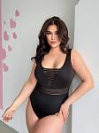 Цельный купальник больших размеров. Купальник закрытый с сеткой в полоску. Чашка съемная, вставка. Ткань: бифлекс, сетка, трикотажный подклад.