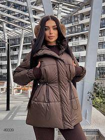 Дутая тёплая куртка свободного кроя. Дизайн на запах, широкий отложной ворот, заниженная линия плеч, боковые карманы. Есть подкладка, в комплекте пояс. Размер универсальный, подходит на 42-46.