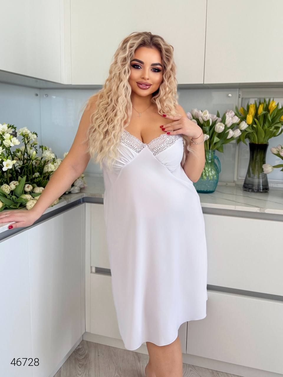 о товаре Ночная рубашка женская. Длинная ночная рубашка на регулируемых бретелях впереди по груди.