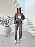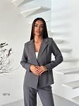 Костюм женский брючный. Пиджак с подплечниками, застегивается на пуговицу. Брюки застегивается на пуговицу и молнию, есть карманы.