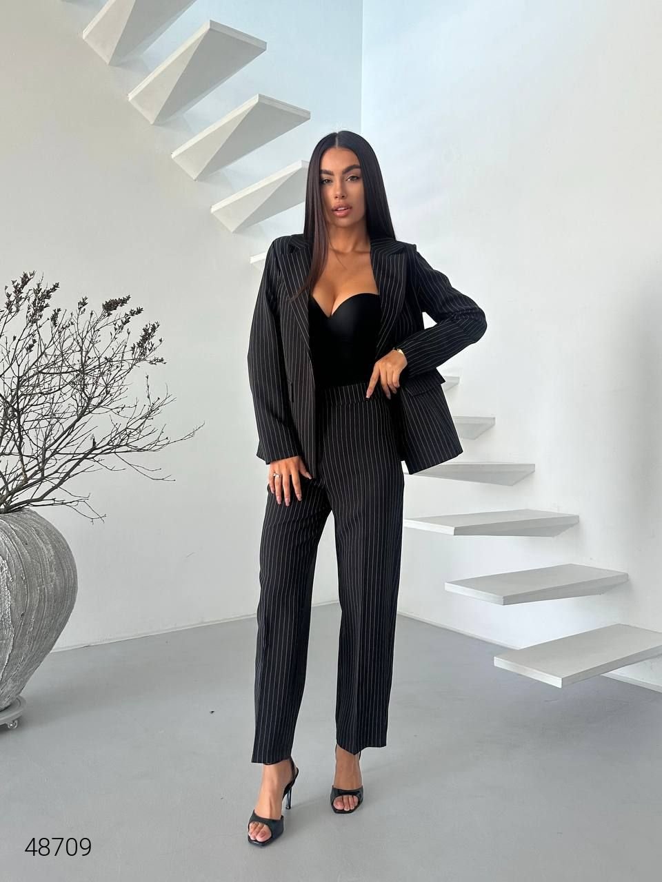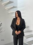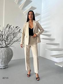 Костюм женский брючный. Пиджак с подплечниками, застегивается на пуговицу. Брюки застегивается на пуговицу и молнию, есть карманы.