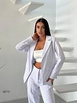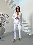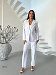 Костюм женский брючный. Пиджак с подплечниками, застегивается на пуговицу. Брюки застегивается на пуговицу и молнию, есть карманы.