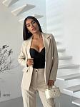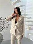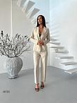 Костюм женский брючный. Пиджак с подплечниками, застегивается на пуговицу. Брюки застегивается на пуговицу и молнию, есть карманы.