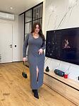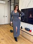 Платье миди. V-образный вырез горловины красиво открывает шею. Впереди есть разрез.