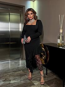 Платье мини с длинным рукавом. Платье можно моделировать: веревочки, расположенные в районе груди, можно завязать бантиком или на шее. Позади шнуровка – регулирует приталенность.
