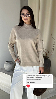Доброго дня. Забрала замовлення. Дуже Вам вдячна. Саме те, що хотіла. Не товста кофтинка, але при цьому м'яка на дотик і приємна. Горловина теж саме те, що хотілося, не високо дуже. Щиро дякую. Гарних вам продаж і вдячних клієнтів!
