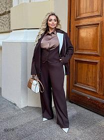 Брюки жіночі з еко-шкіри. Застібаються на блискавку, є кишені. Тканина: еко-шкіра.Розміри: 50-52, 54-56, 58-60Заміри: 50-52: талія тягнеться до 100 см, ОБ: 110 см.54-56: талія тягнеться до 110 см, ОБ: 120 см.58-60: талія тягнеться до 120 см, ОБ: 130 см.Довжина: 108 см.