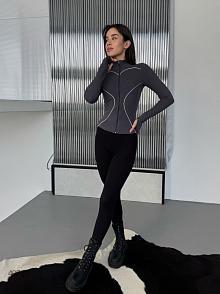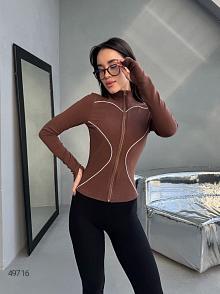 Лонгслів жіночій на блискавці. На рукавах є вирізи для пальчиків.