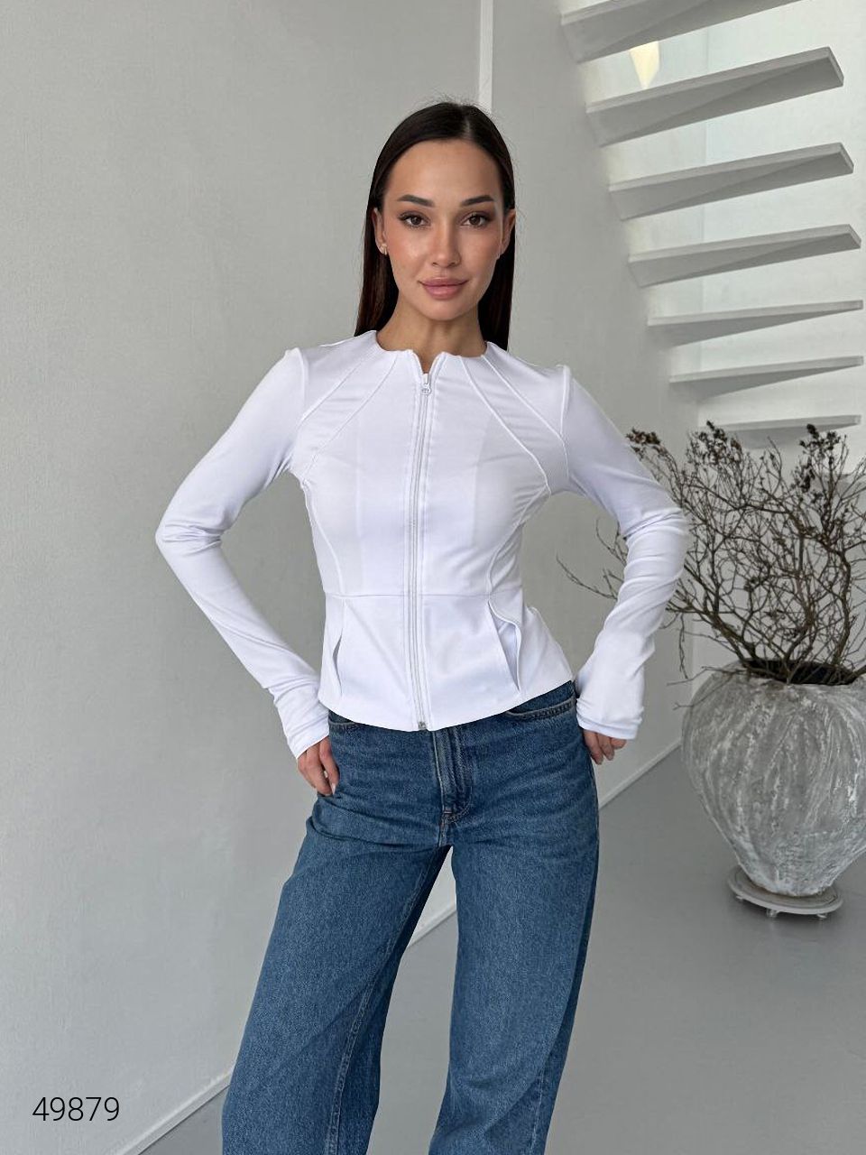 Лонгслів жіночій на блискавці. Приталений крій. Має кишені та виріз під пальчик.Тканина: турецький мікродайвінг.Розміри: 42, 44, 46Заміри: 42: ОГ: 78 см, ОТ: 66 см, довжина: 50 см, рукав: 76 см.44: ОГ: 86 см, ОТ: 72 см, довжина: 52 см, рукав: 77 см.46: ОГ: 94 см, ОТ: 78 см, довжина: 54 см, рукав: 78 см.