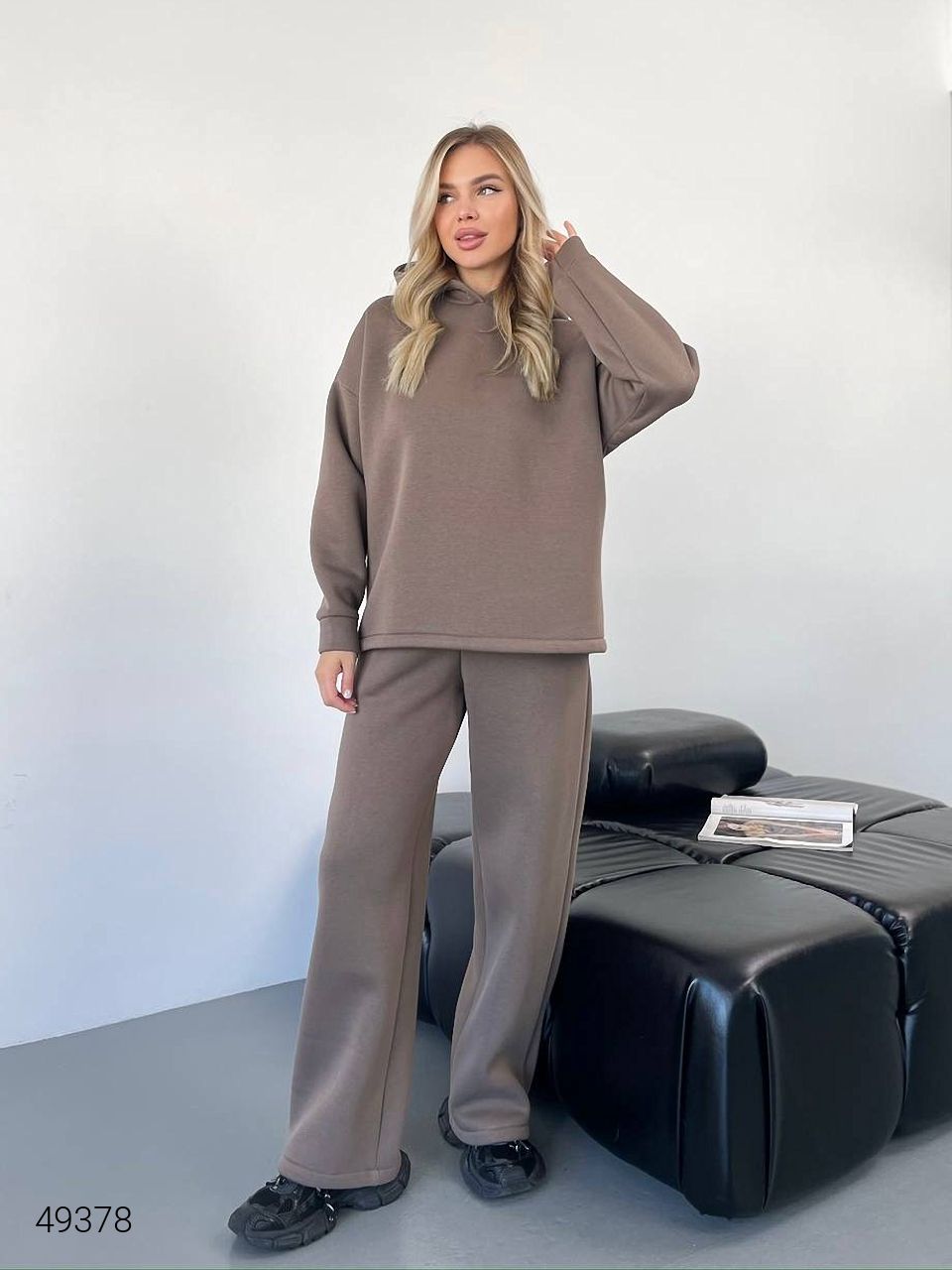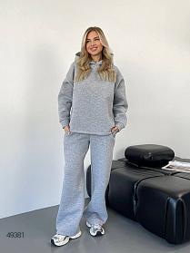 Костюм жіночий. Штани та худі з регульованим низом. У худі подвійний капюшон.Тканина: турецька трьохнитка на флісі «піньє». Склад: бавовна - 90%, поліамід - 10%. Тепла, не кошлатиться, не линяє.Розміри: 42-44, 46-48