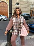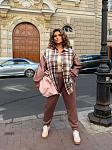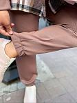 Костюм брючний жіночій. Сорочка подовжена на ґудзиках попереду, розрізи з боків, на рукавах манжет. Штани з кишенями, на поясі резинка, внизу манжет.
