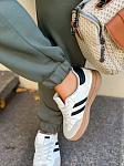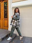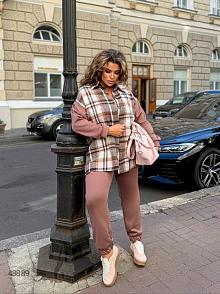 Костюм брючний жіночій. Сорочка подовжена на ґудзиках попереду, розрізи з боків, на рукавах манжет. Штани з кишенями, на поясі резинка, внизу манжет.