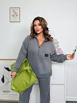 Костюм жіночій з коміром-поло. Кофта застібається на блискавку. Штани на резинці, є кишені. Тканина: полар фліс.Розміри: 48-52, 54-58Заміри: 48-52: Кофта: ОГ: 130 см, ОТ: 120 см, ОБ: 112 см, довжина рукава: 53 см, довжина виробу: 71 см.Штани: ОТ: 80 см, ОБ: 122 см, довжина виробу: 110 см.54-58: Кофта: ОГ: 138 см, ОТ: 128 см, ОБ: 120 см, довжина рукава: 53 см, довжина виробу: 71 см.Штани: ОТ: 88 см, ОБ: 120 см, довжина виробу: 110 см.