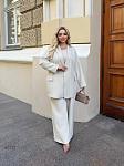 Костюм жіночій у смужку. На штанах позаду резинка, піджак без застібок, та без підкладу.