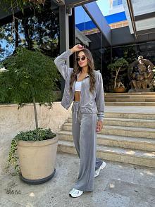 Спортивний костюм велюровий жіночій. Кофта застібається на блискавку. Штани на резинці та кулісці, є кишені.