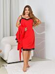 Комплект з халату та нічної сорочки. Халат на запах, під пояс. Рукав 3/4. Є накладна кишеня. Нічна сорочка на регульованих бретелях, силует напівприталений.