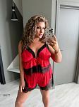 58-60: об'єм грудей - 120 см, об'єм талії (довжина гумки) - 98 см, об'єм стегон - 144 см, висота шортів - 30 см, висота пеньюара - 46 см.