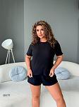 Піжама жіноча. Футболка та шорти. Футболка довга з коротким рукавом. Шорти на резинці без кишень.