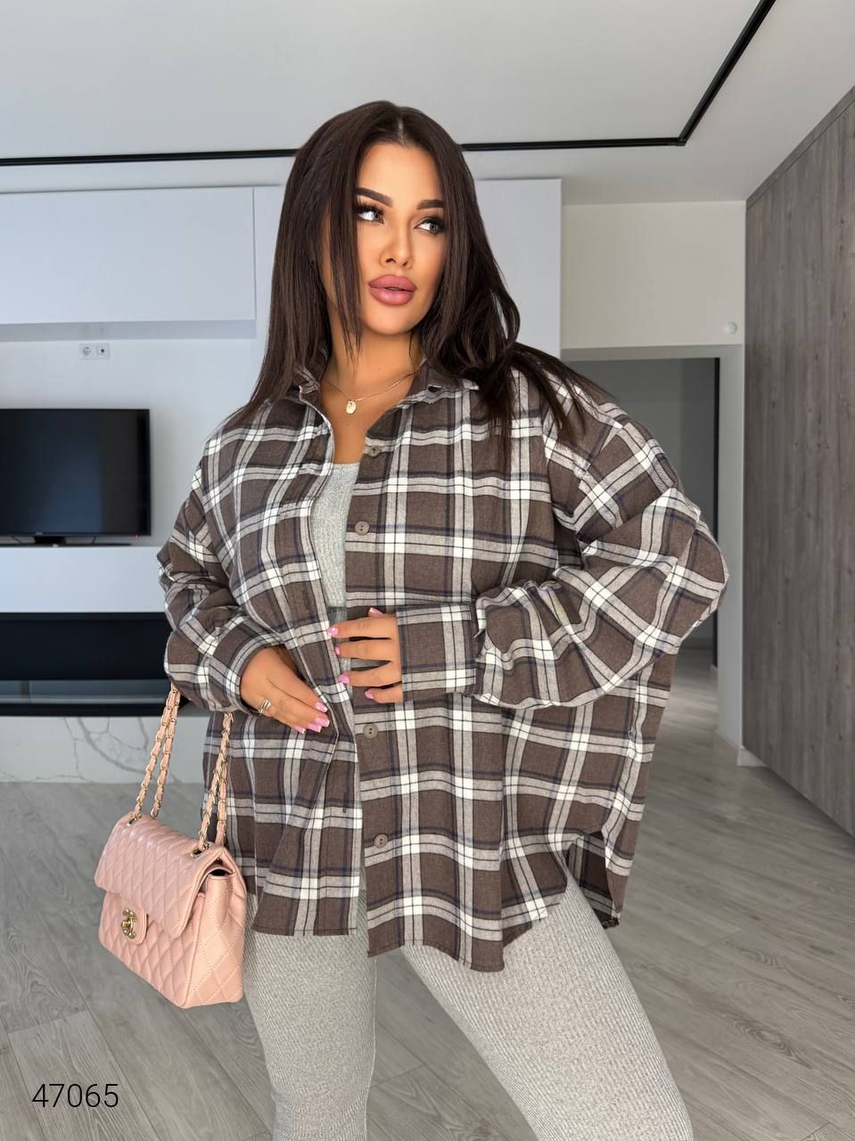 Сорочка в клітинку жіноча. Застібається на ґудзики.