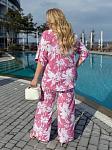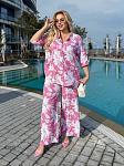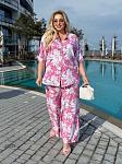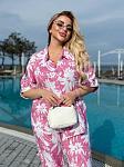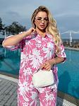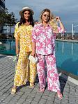 Костюм женский с рубашкой. Рубашка застегивается на пуговицы. Брюки на высокой посадке, талия на резинке, есть карманы.