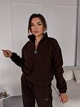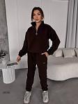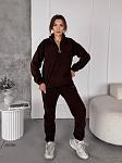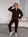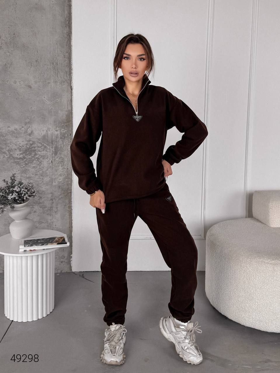 Костюм жіночій з флісу. Кофта зверху застібається на блискавку, внизу є регулятори, на рукавах резинки. Штани на резинці та зав’язці, є кишені.