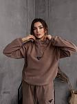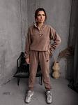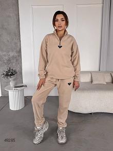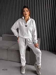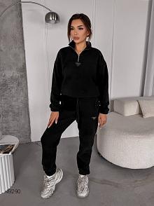Костюм жіночій з флісу. Кофта зверху застібається на блискавку, внизу є регулятори, на рукавах резинки. Штани на резинці та зав’язці, є кишені.
