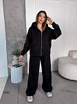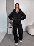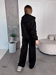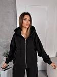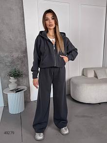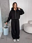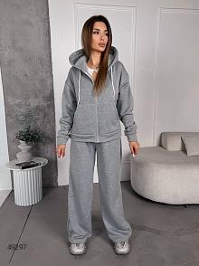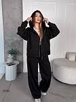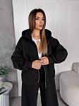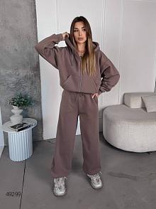 Спортивний костюм жіночій. Кофта на змійці з спущеним рукавом на манжеті, з подвійним капюшоном та карманом кенгуру, низ кофти на манжеті. Штани з кишенями, низ затягується на затяжках, пояс на простроченій резинці та затяжці.
