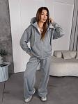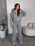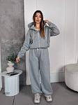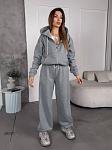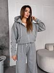 Спортивний костюм жіночій. Кофта на змійці з спущеним рукавом на манжеті, з подвійним капюшоном та карманом кенгуру, низ кофти на манжеті. Штани з кишенями, низ затягується на затяжках, пояс на простроченій резинці та затяжці.