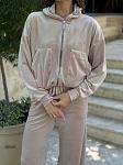 Спортивний костюм велюровий жіночій. Кофта застібається на блискавку. Штани на резинці та кулісці, є кишені.