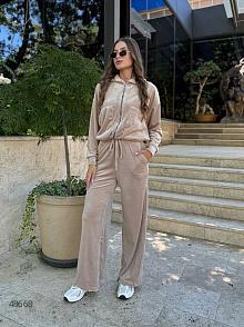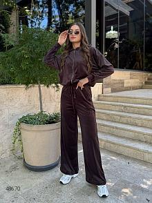 Спортивний костюм велюровий жіночій. Кофта застібається на блискавку. Штани на резинці та кулісці, є кишені.
