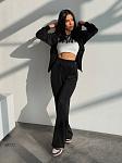 Cпортивний костюм жіночій. Кофта застібається на блискавку, попереду імітація корсету. Вільного крою штани, з кишенями, пояс на гнучкій резинці.