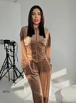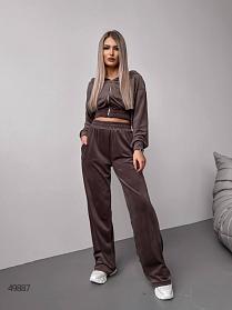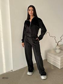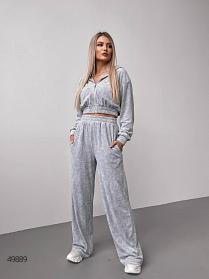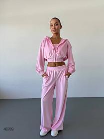 Cпортивний костюм жіночій. Кофта застібається на блискавку, попереду імітація корсету. Вільного крою штани, з кишенями, пояс на гнучкій резинці.