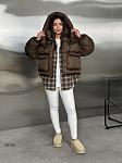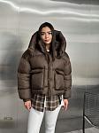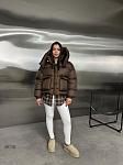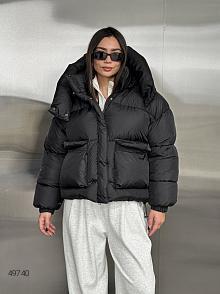 Куртка жіноча оверсайз. Застібається на блискавку і кнопки, є капюшон, що відстібається, і кишені. Понизу затяжки.