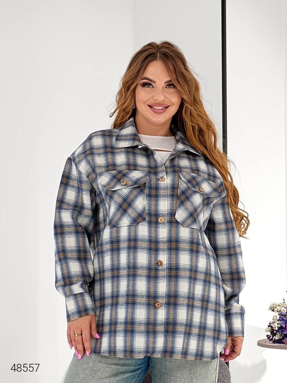 Картата сорочка жіноча. Є нагрудні кишені. Застібається на ґудзики.