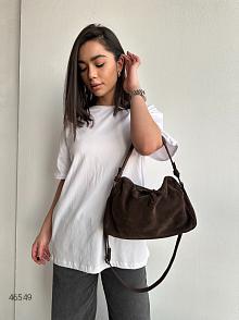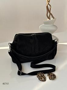 Сумка з натуральної замші. Виробництво: Україна. Застібається на блискавку, всередині має одну відкриту кишеню и одну кишеню на блискавці, зовні є додаткова маленька кишеня на блискавці. В комплекті йдуть два ремені: довгий - 110 см і короткий (ручку) - 12 см (від верха сумки). Йде на підкладці.