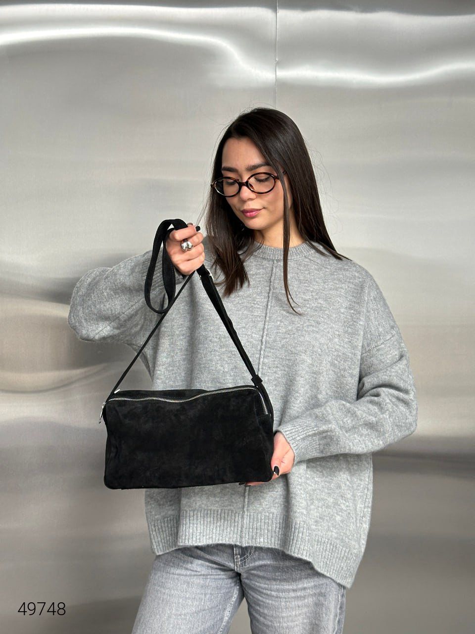 Сумка жіноча з натуральної замші. Застібається на блискавку, всередині є підклад, плечовий ремінь йде в комплекті.Тканина: натуральна замша.Розміри: 28х10х16 см