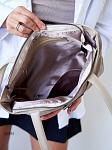 Сумка жіноча зі вставками натуральної замші. Виробництво: Україна. Відчиняється за допомогою блискавки. Всередині сумка має відкриту кишеню і на блискавці. Має підклад.