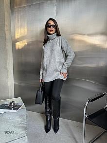 Светр жіночий оверсайз. Високий комір з відворотом, занижена лінія плечей. Розмір універсальний підходить на 42-54. Склад тканини: 80% акрил, 10% вовна, 10% поліестер. Виробництво Туреччини.