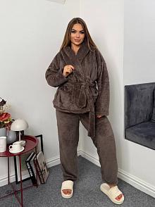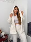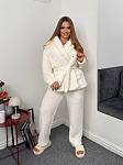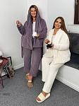 Костюм-трійка жіночий. Кофта, топ та штани. У кофті є кишені, пояс в комплекті. Штани на резинці.